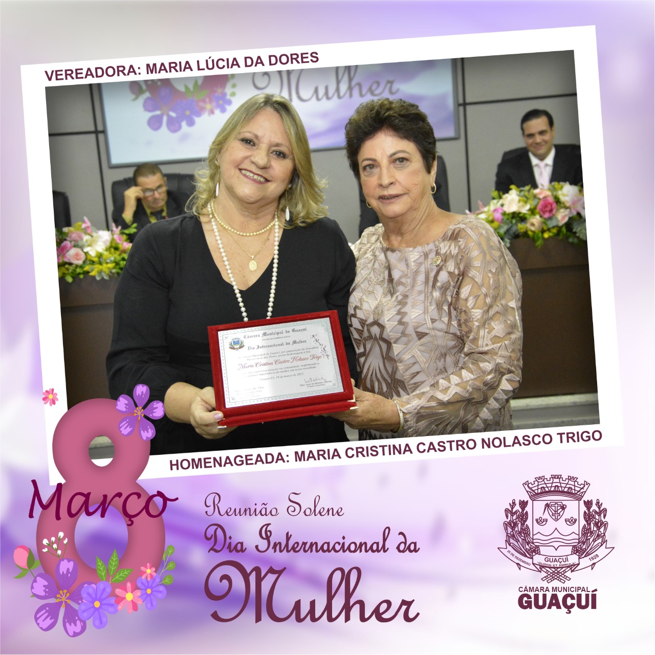 Para comemorar o “Dia Internacional da Mulher”, celebrado em 8 de março, a Câmara Municipal de Guaçuí realizou uma Sessão Solene na noite desta quinta-feira (10/3).