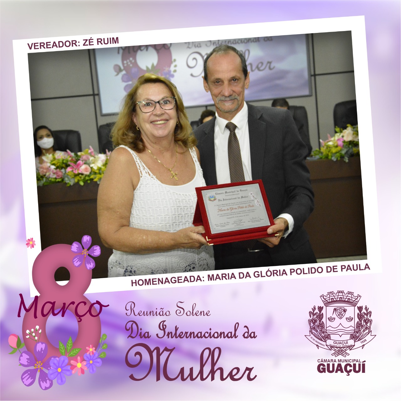 Vereador Zé Ruim homenageou MARIA DA GLÓRIA POLIDO DE PAULA
