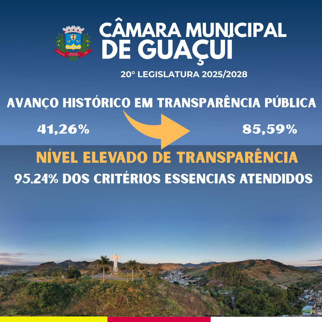A Câmara Municipal de Guaçuí alcançou um avanço significativo nos indicadores de Transparência Pública em 2025.