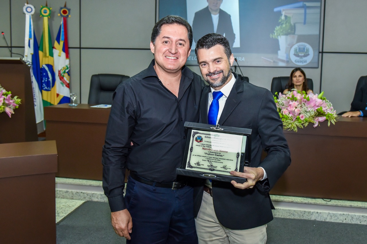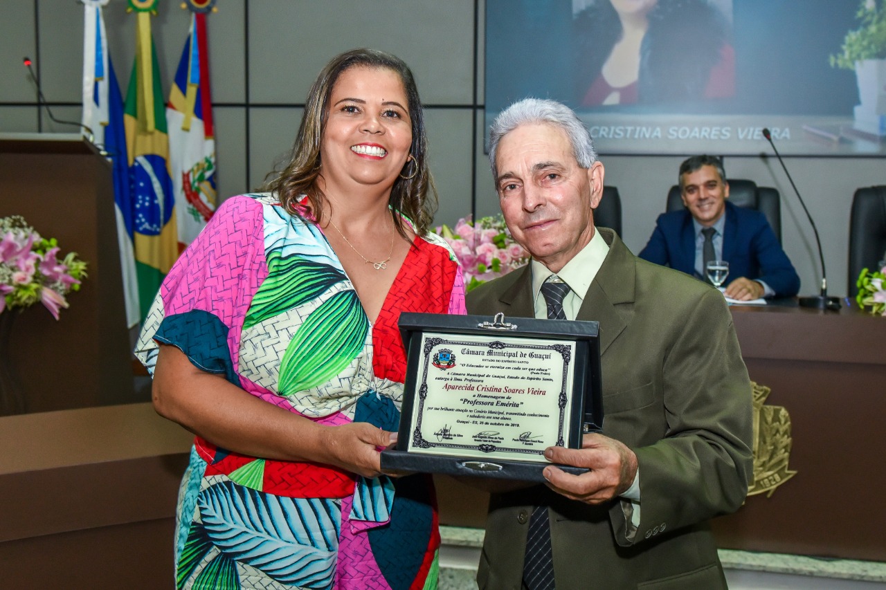A Câmara Municipal de Guaçuí realizou na noite do dia 25 de outubro de 2019, no Plenário da Câmara "Dr. Francisco Lacerda de Aguiar", a Primeira REUNIÃO SOLENE PROFESSOR EMÉRITO, homenageando Professores de Guaçuí, como forma de reconhecimento público àqueles que contribuiram decisivamente para a produção do saber, a busca da ciência, a multiplicação do conhecimento e o desenvolvimento do ensino em nosso Município.